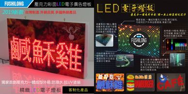 獨家首創,壓克力一體成形外箱,防潑水,抗UV塗裝. - 業界最輕全機僅1.5公斤. - 版面全彩UV印刷,即使不插電也可輕鬆做生意. - 100%客製化,從板面設計,排燈到閃爍變化模式均依客戶須求設計保證獨一無二與眾不同. - 閃爍變化控制採可編輯USB介面控制卡,非傳統固定式閃爍控制盒 呆板的閃動模式,可自定義漸亮及任意閃爍方式,往後如須要亦可變更. - 安裝方便,附多功能安裝套件,可吊可掛還支援玻璃內,外側安裝.